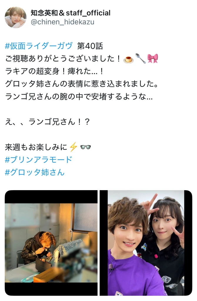 俳優の知念英和が、6月22日に放送された「仮面ライダーガヴ」第40話で、庄司浩平扮するラキアの変身に痺れたとコメントした。