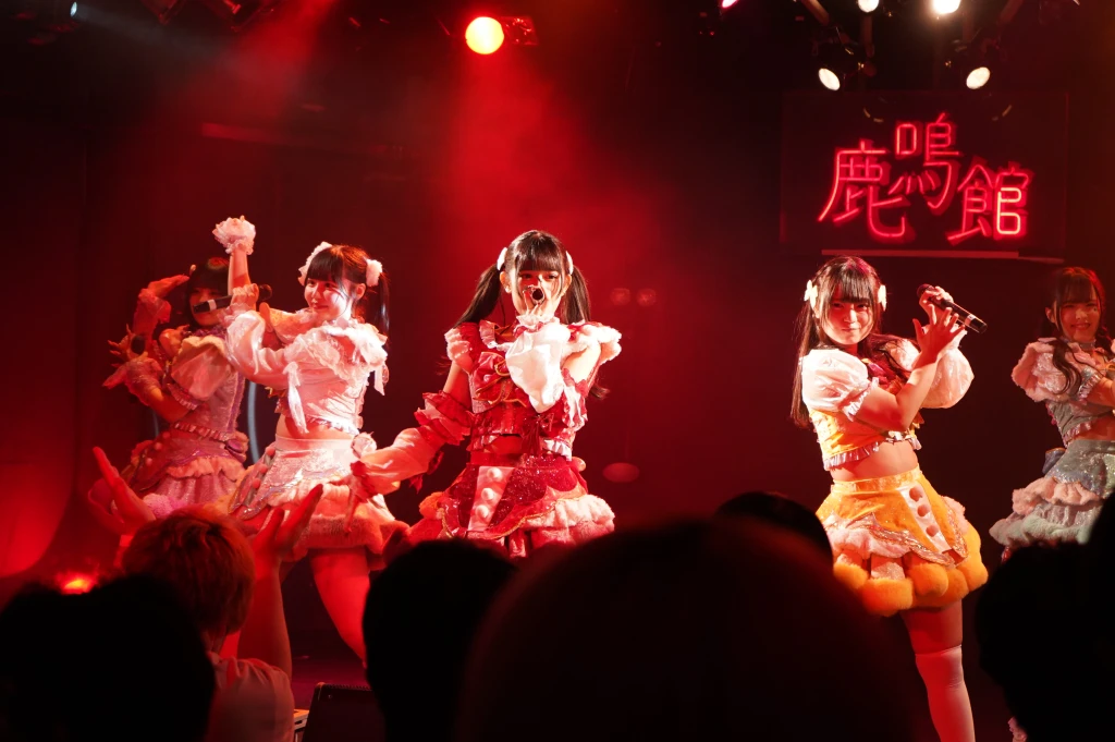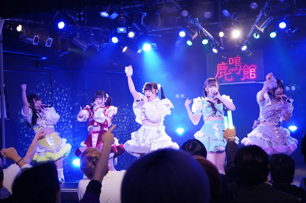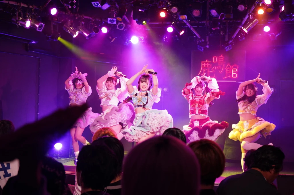 4組目に登場したのは5人組グループ・きゅんタヒに一生を。先日4月27日に新体制を披露し、パワーアップしたグループだ。SEでは、後ろ向きにメンバーが立ち、1人ずつアピールする姿が印象的。全員でヘドバンする楽曲もあり、「声出せー!」との煽りからはじまる楽曲もあり、アグレッシブなライブスタイルで会場との一体感を生んでいた。