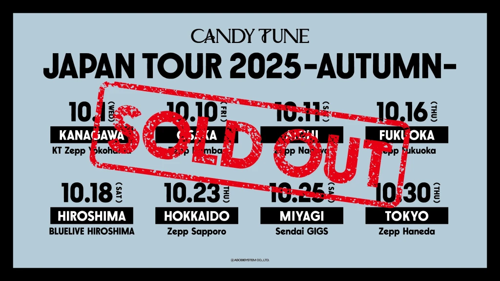 CANDY TUNEが10月より開催する、グループ初の全国ツアー『CANDY TUNE JAPAN TOUR 2025 - AUTUMN -』のチケットが、プレイガイド先行で全公演完売となった。これを受け、一般発売は行われないことが発表された。