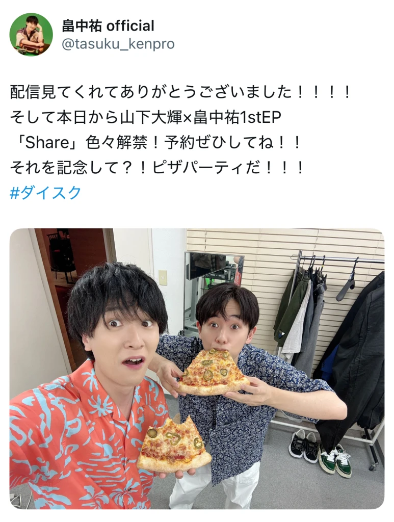 大盛り上がりの配信に、ファンからも「楽しかった」「ピザデカすぎる」「グッズかっこよすぎ」とたくさんの声があがっている。
