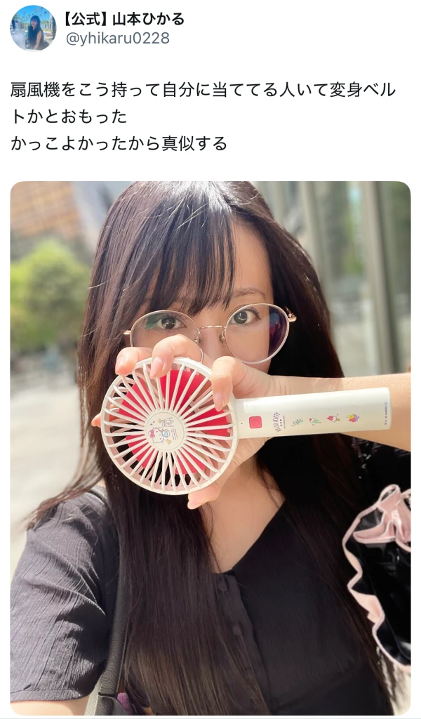 俳優でプロ雀士の山本ひかるが、ハンディファンの持ち方についてアップし話題に。