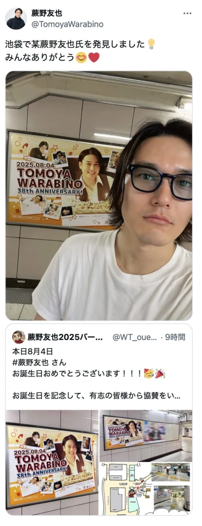 ファン有志から応援広告の掲示があったようで、それを発見したとのこと。