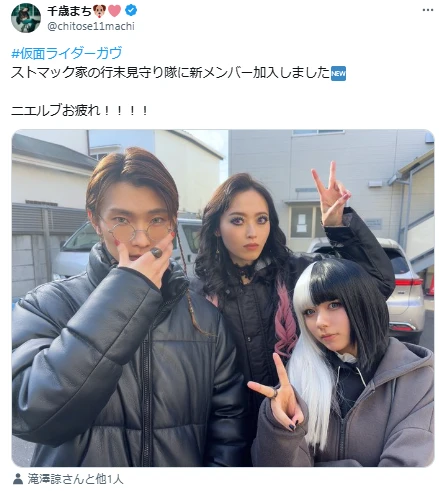 俳優でコスプレイヤーの千歳まちが、今回放送分の仮面ライダーガヴにて退場した滝澤諒を労った。