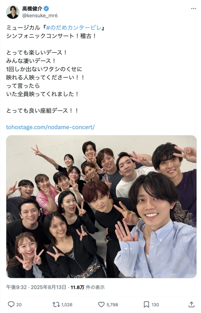 稽古場で撮影した出演者とのオフショットを公開し、ファンからは「とってもとっても楽しみデース!!!😆」「素敵な座組なのが凄く伝わってきます!楽しそう!」などの声が寄せられている。