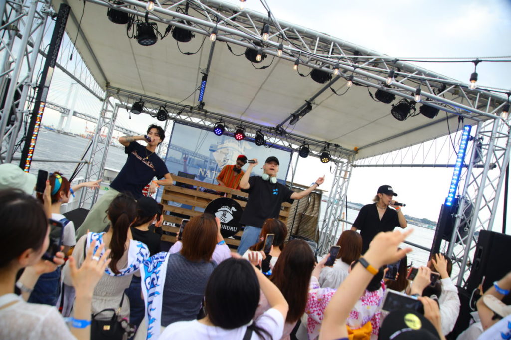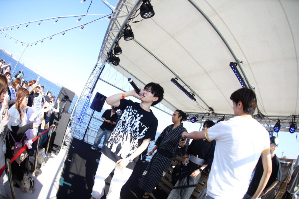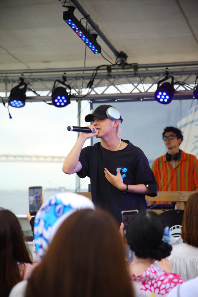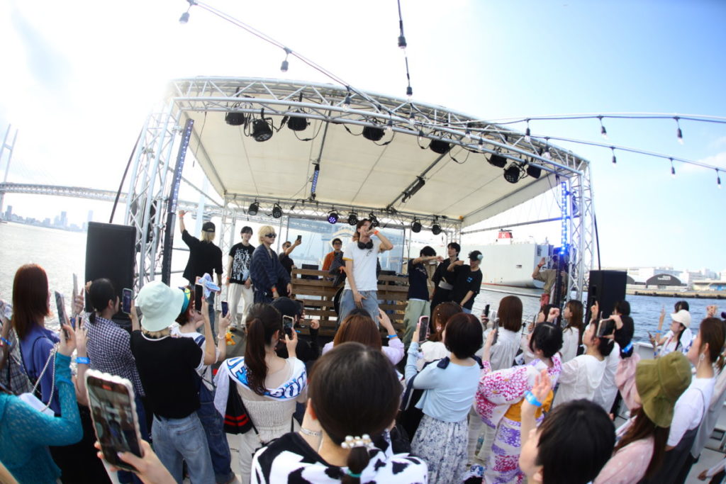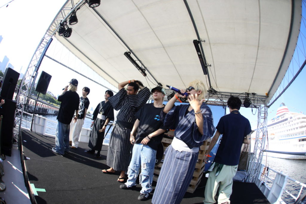 「こんなライブ、俺は見たことない! みんな、この瞬間を楽しもう!」金髪グラサンの浴衣姿が映えるYOROの言葉に「イェーイ!」と歓声が返る。続く「ヨコハマBLUE SOUNDSクルージングパーティ、楽しむ準備できてるかー!」の声とともに、DJ Sorajiがエアホーンを鳴らす。