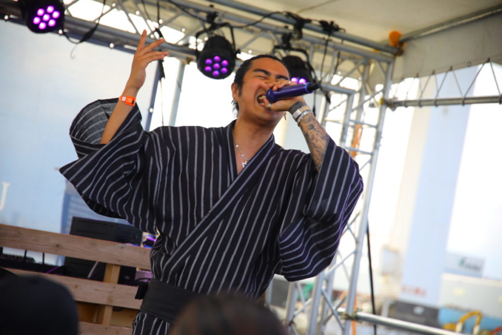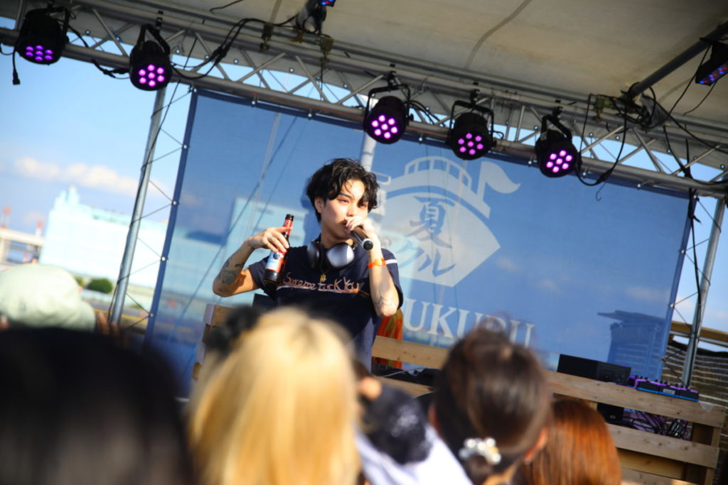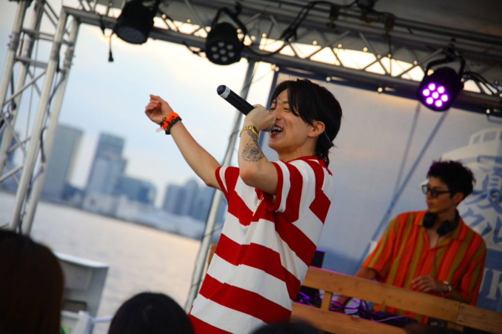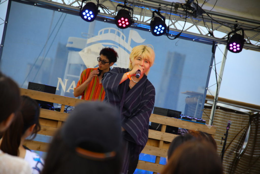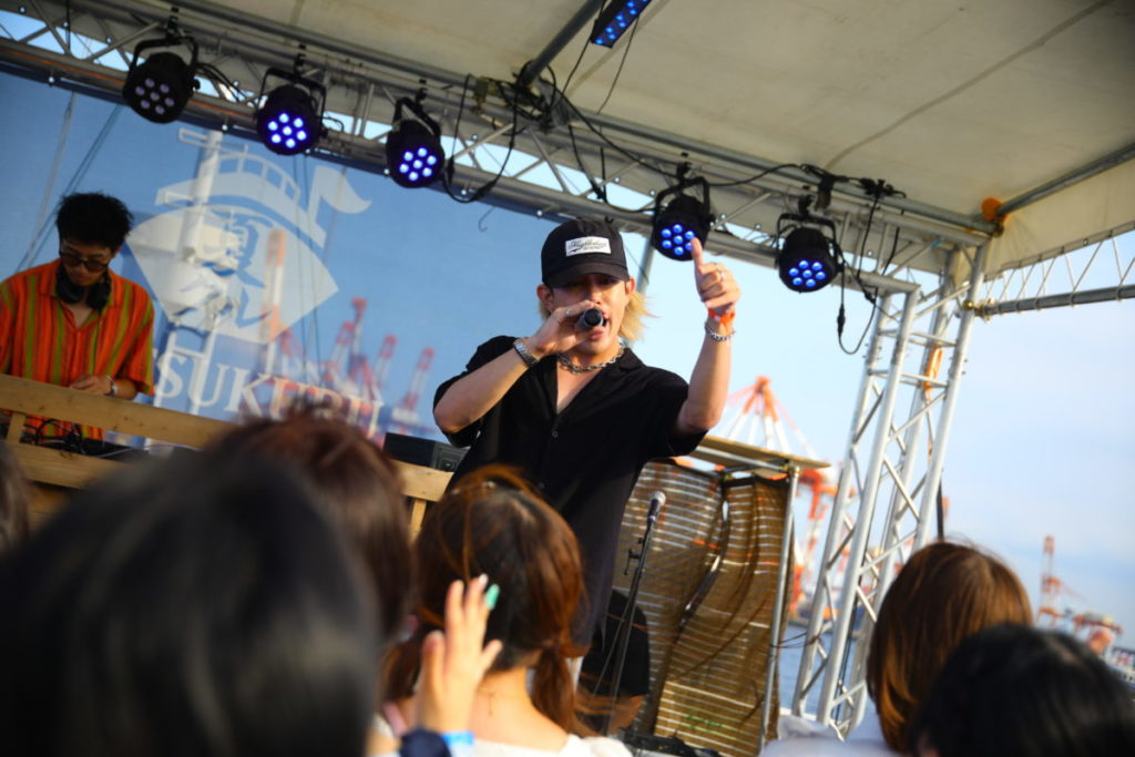 「こんなライブ、俺は見たことない! みんな、この瞬間を楽しもう!」金髪グラサンの浴衣姿が映えるYOROの言葉に「イェーイ!」と歓声が返る。続く「ヨコハマBLUE SOUNDSクルージングパーティ、楽しむ準備できてるかー!」の声とともに、DJ Sorajiがエアホーンを鳴らす。