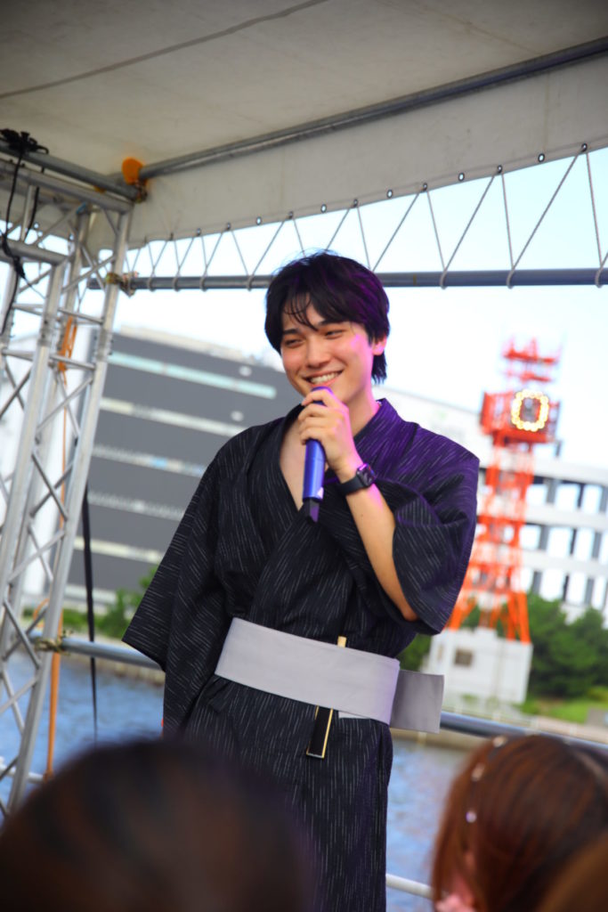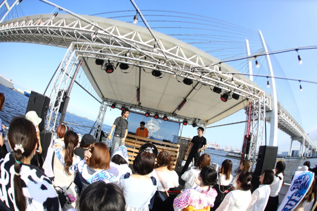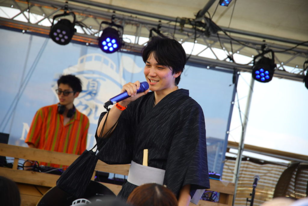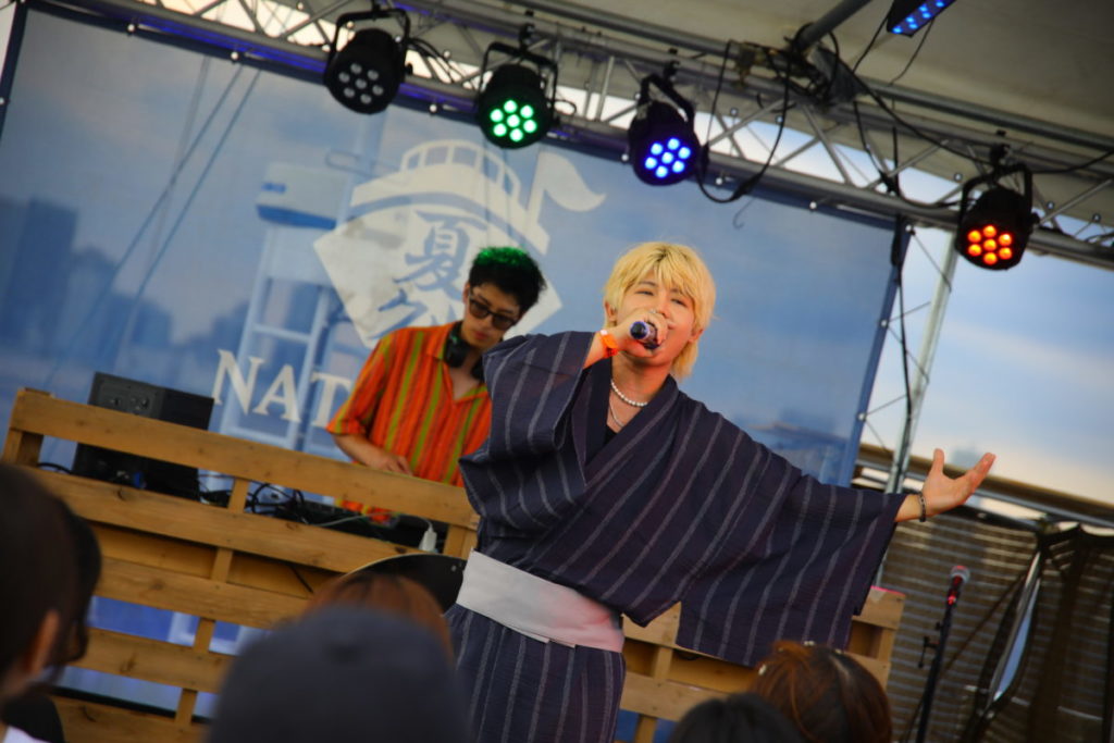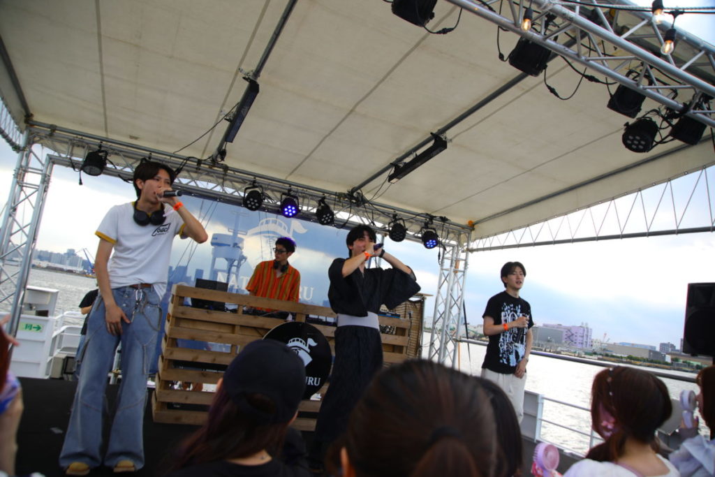 roomRのREIJIです!船上でのライブは、景色もより開放感があって最高でした!浴衣チームがいたり、屋外ならではの風が吹いていたりして、より爽やかなbluesoundsをお届けできたかなと思います!