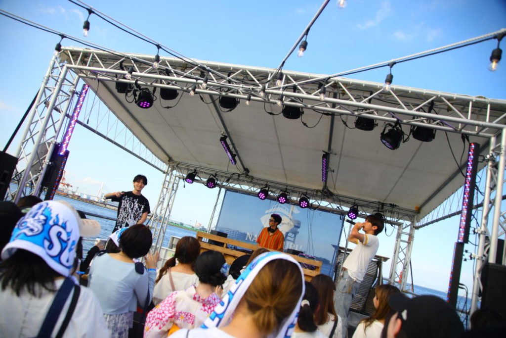 8月3日(土)、快晴の横浜・象の鼻桟橋。台風一過の猛暑日、『Yokohama Cruising Party』powered by BLUE SOUNDSが開催された。4か月ぶりに集まった「BLUE SOUNDS」は、なんと船の上!夏らしい潮風と照りつける太陽の下、多くのファンが甲板ステージに詰めかけた。