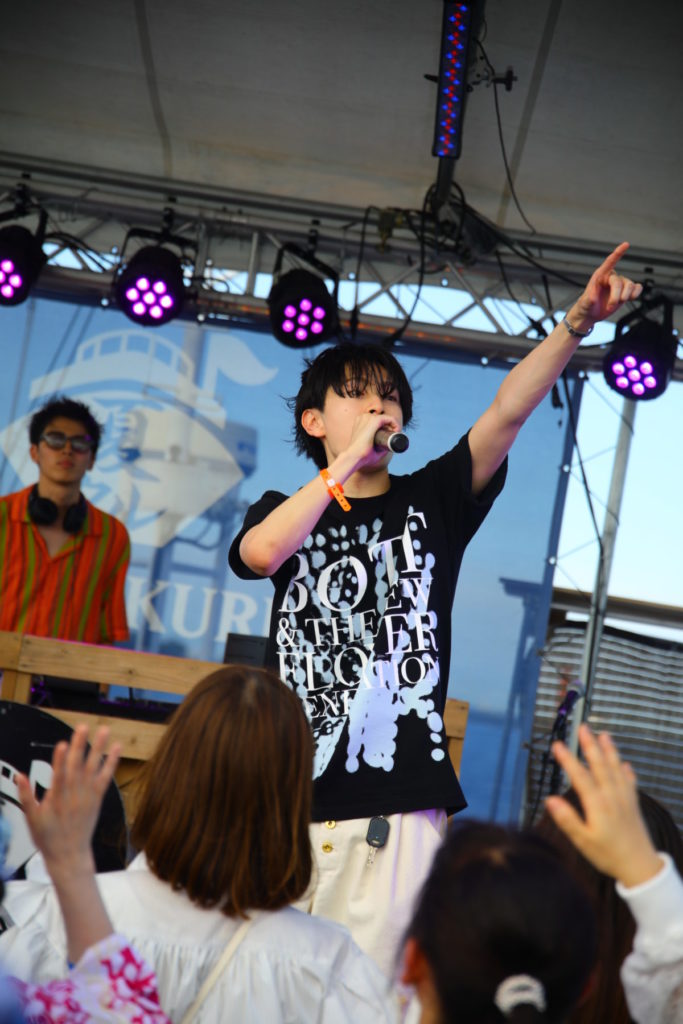 にぎやかなイントロとスクラッチ音が流れる中、「Hey Hey!皆さん、YORO来ましたよ!盛り上がっていけますかー!」と元気よく登場。1曲目『NEGAPOSI』を全力で届け、「横浜の海にみんなの声を!」と呼びかけると大きなレスポンスが返る。