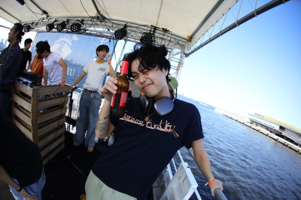 揺れる船のステージで休むことなくプレイしたDJ Sorajiへ、YOROが感謝を伝えた