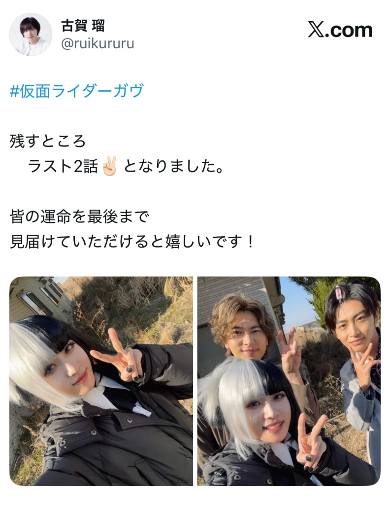 俳優の古賀瑠が、自身が出演する「仮面ライダーガヴ」のオフショットを公開した。