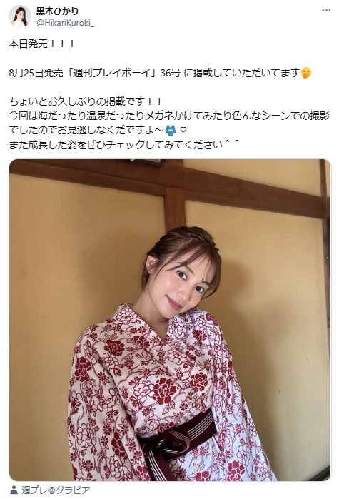 タレントの黒木ひかりが、浴衣姿を披露し話題に。