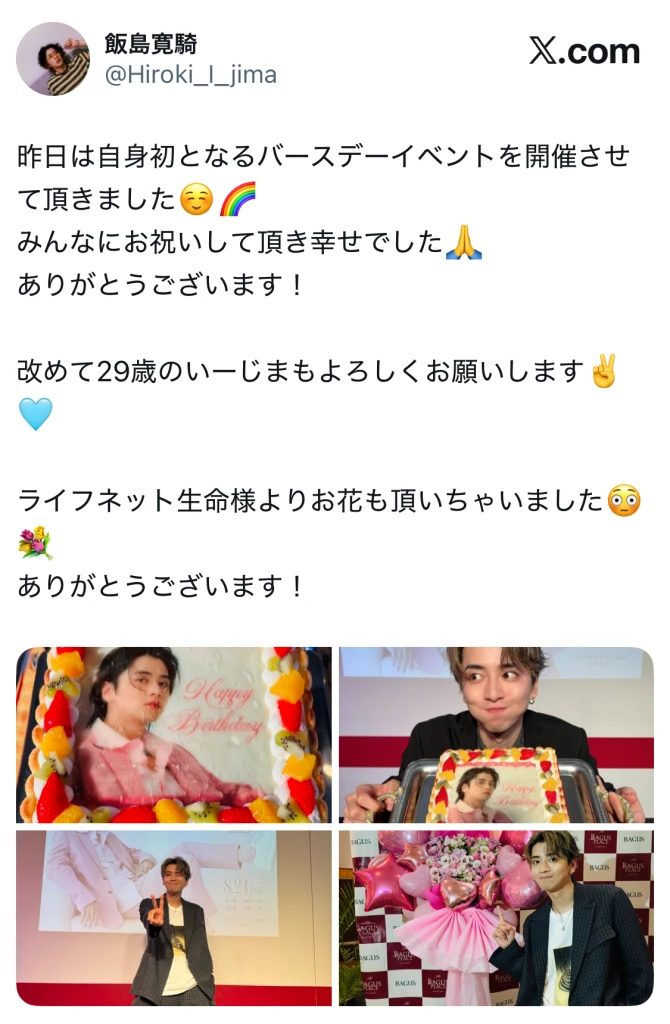 俳優の飯島寛騎が29歳の誕生日を迎え、自身初となるバースデーイベントを開催した。