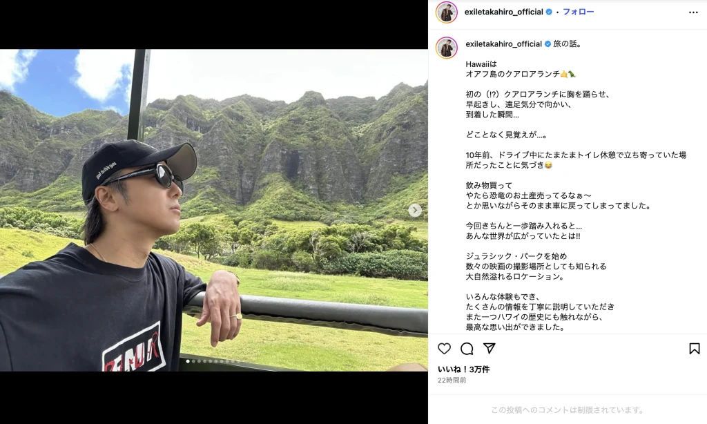 EXILE・TAKAHIRO、ハワイ・クアロアランチでのオフショット公開 「最高な思い出ができました」