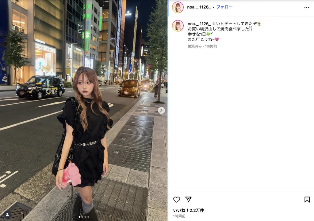「せいとデートしてきたぞ👫 お買い物沢山して焼肉食べました𓌉𓇋 幸せな1日🍀*゜ また行こうね~💖」とつづり、写真を投稿。