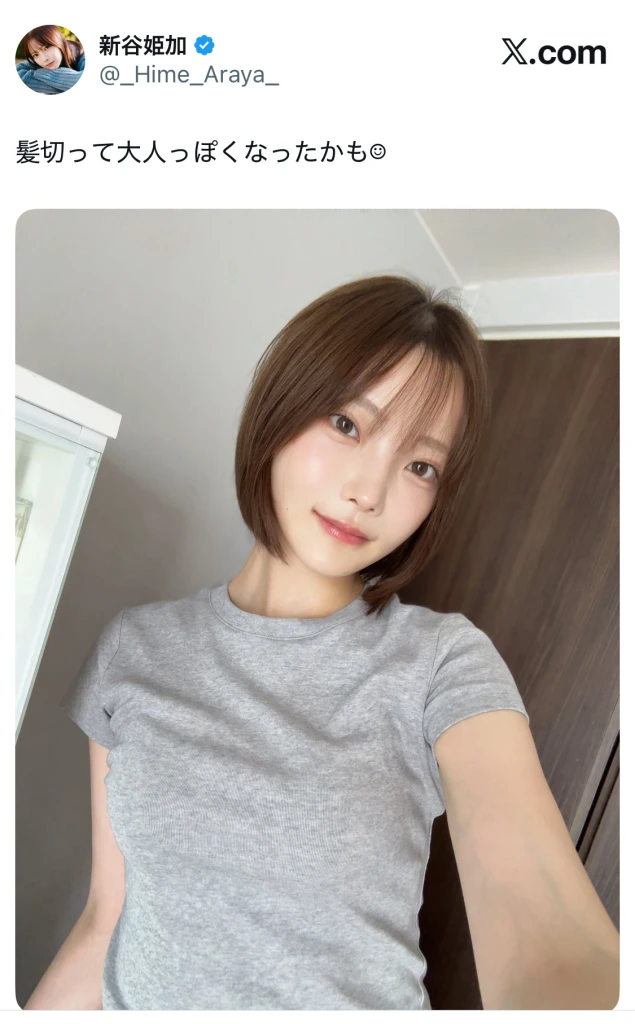 タレントの新谷姫加が、髪を短く切った姿を披露し話題に。