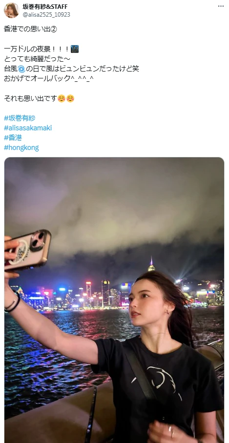 俳優の坂巻有紗が香港で開催されたイベントの際のオフショットを投稿し、ちょっとした話題に。
