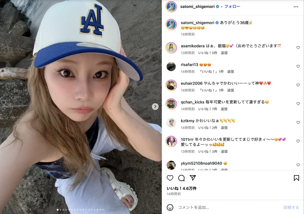 「ありがとう36歳✌️😚🤓😛😋🤭🥴」とつづり、海辺で愛犬や友人と撮影した写真を投稿。
