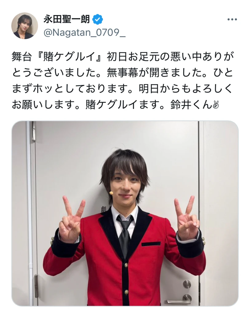 「舞台『賭ケグルイ』初日お足元の悪い中ありがとうございました。