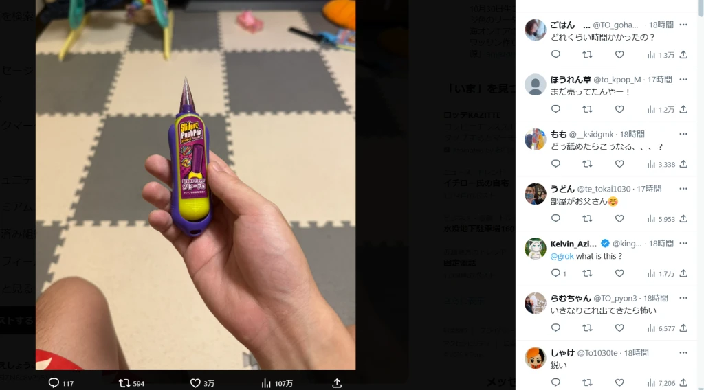 スライダーズプッシュポップを尖らせるように召し上がったてつや。フォロワーからは「鋭い」「どのくらい時間がかかったの?」などと言った声が寄せられた。本当にどうやったらこのような形になるのか本人に聞きたいところだ。