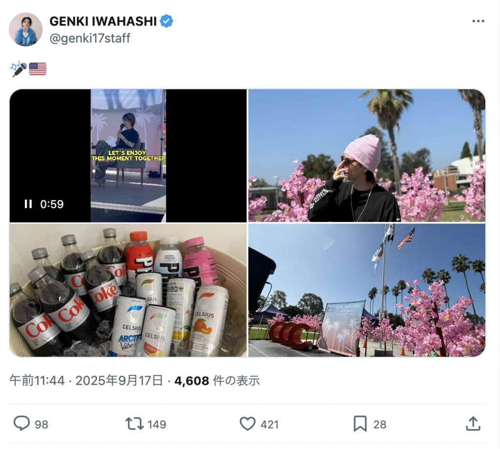 岩橋玄樹、LAの学生限定イベントに出演し圧巻パフォーマンスにファン歓喜