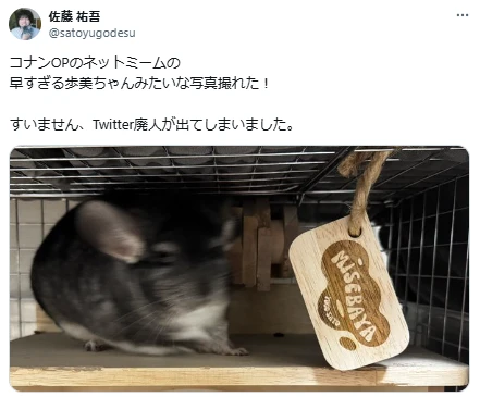 俳優で声優も務める佐藤祐吾が、自身のペット・チンチラのミセバヤの写真を投稿した。