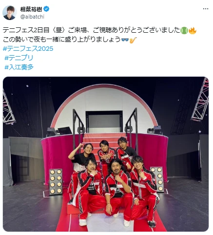 俳優の相葉裕樹が、自身が出演する「テニプリフェスタ2025 応援(エール)」での写真をアップし話題に。