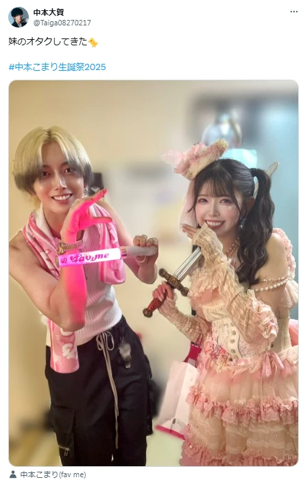俳優の中本大賀が、妹の中本こまりの生誕祭へ参加し話題に。