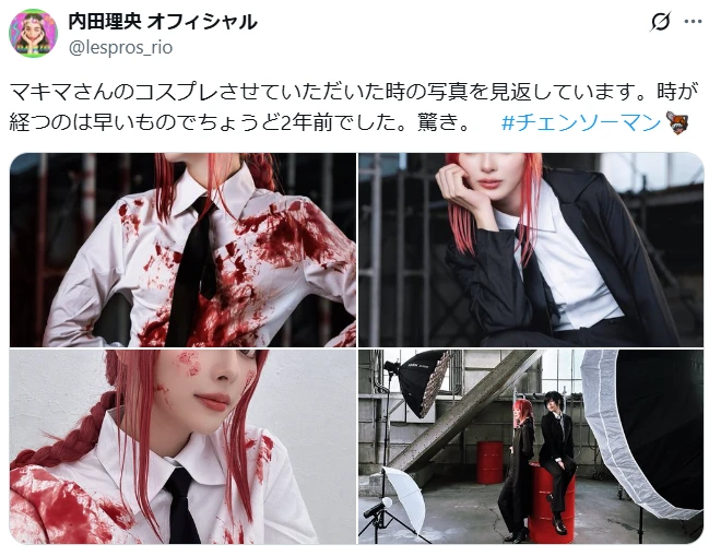 「マキマさんのコスプレさせていただいた時の写真を見返しています。時が経つのは早いものでちょうど2年前でした。驚き。」