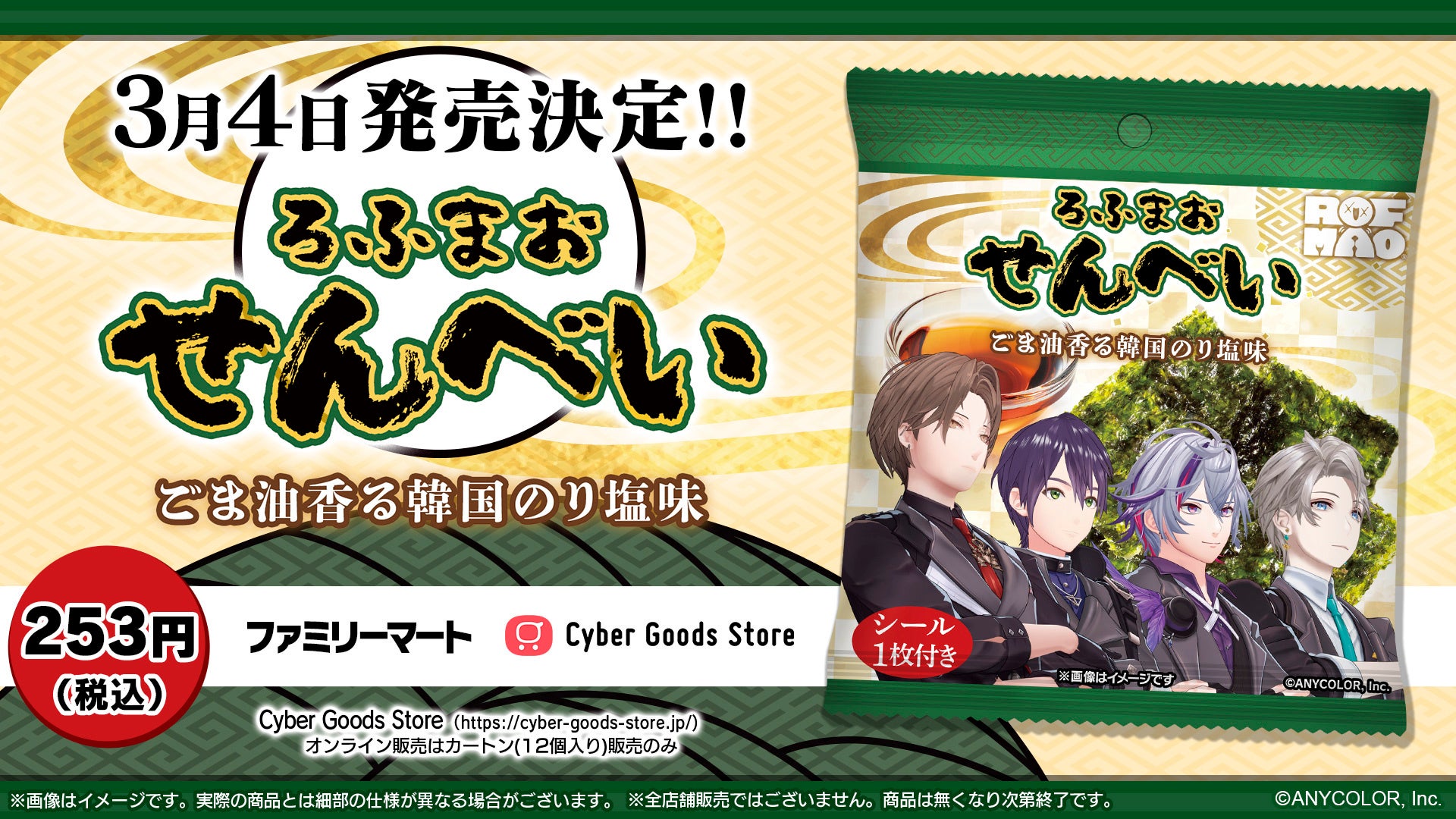 にじさんじ所属のVTuberユニット「ROF-MAO」がプロデュースした新商品「ろふまおせんべい ごま油香る韓国のり塩味」が、2025年3月4日から全国のファミリーマートやCyber Goods Storeで販売開始!