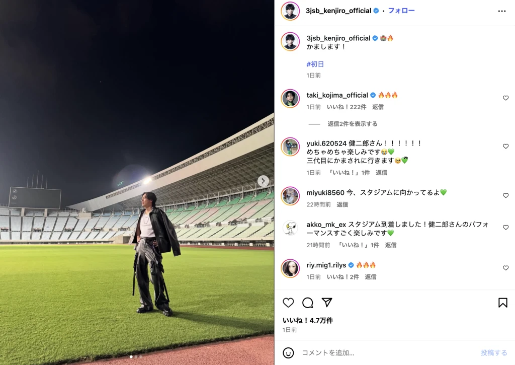 三代目J SOUL BROTHERS・山下健二郎が4日までに Instagramを更新。