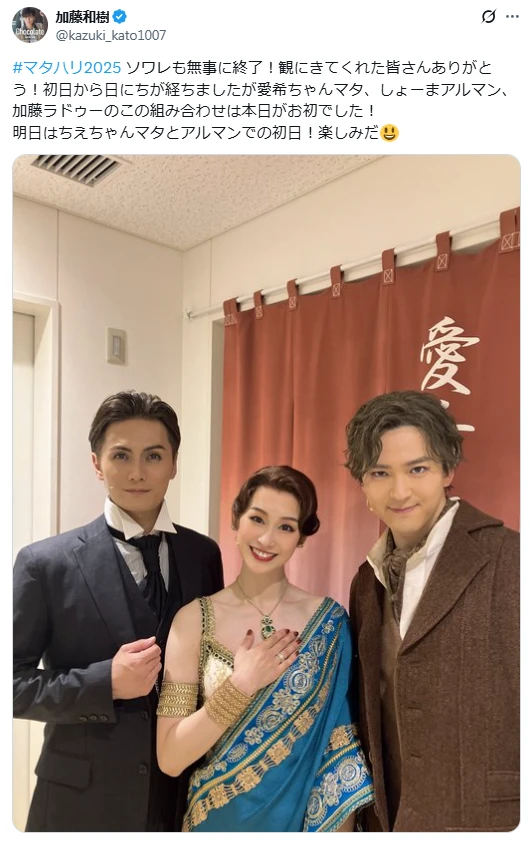 「初日から日にちが経ちましたが愛希ちゃんマタ、しょーまアルマン、加藤ラドゥーのこの組み合わせは本日がお初でした!