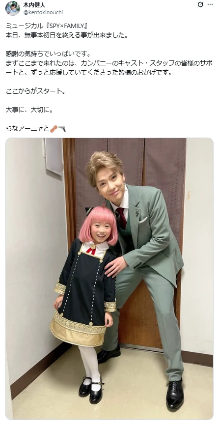 木内健人、ミュージカル「SPY×FAMILY」の初日を迎え感謝を綴る