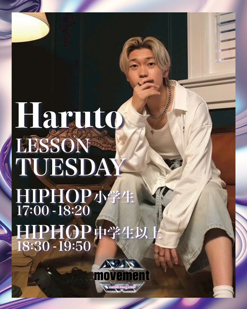 火曜日: HIPHOP小学生・中学生以上(Haruto)、HIPHOP(NAMI)