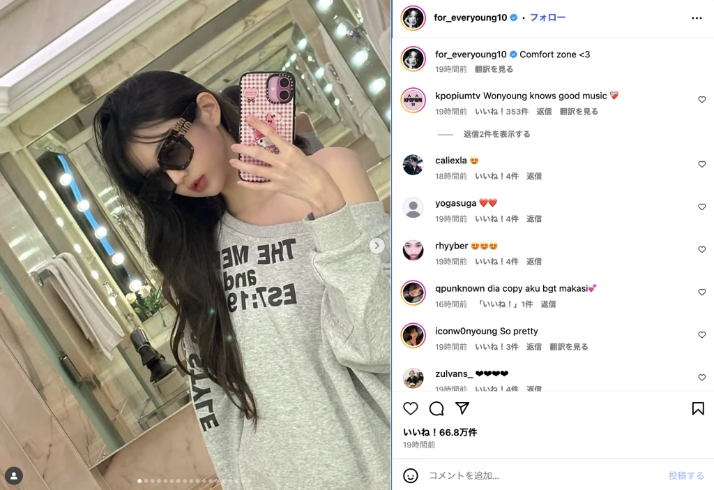 ガールズグループIVE・ウォニョンが、12日Instagramを更新。
