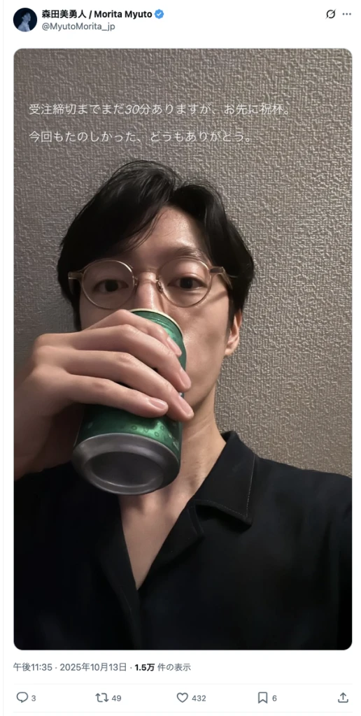 森田美勇人、「FLATLAND」受注最終日に祝杯「今回もたのしかった、どうもありがとう」