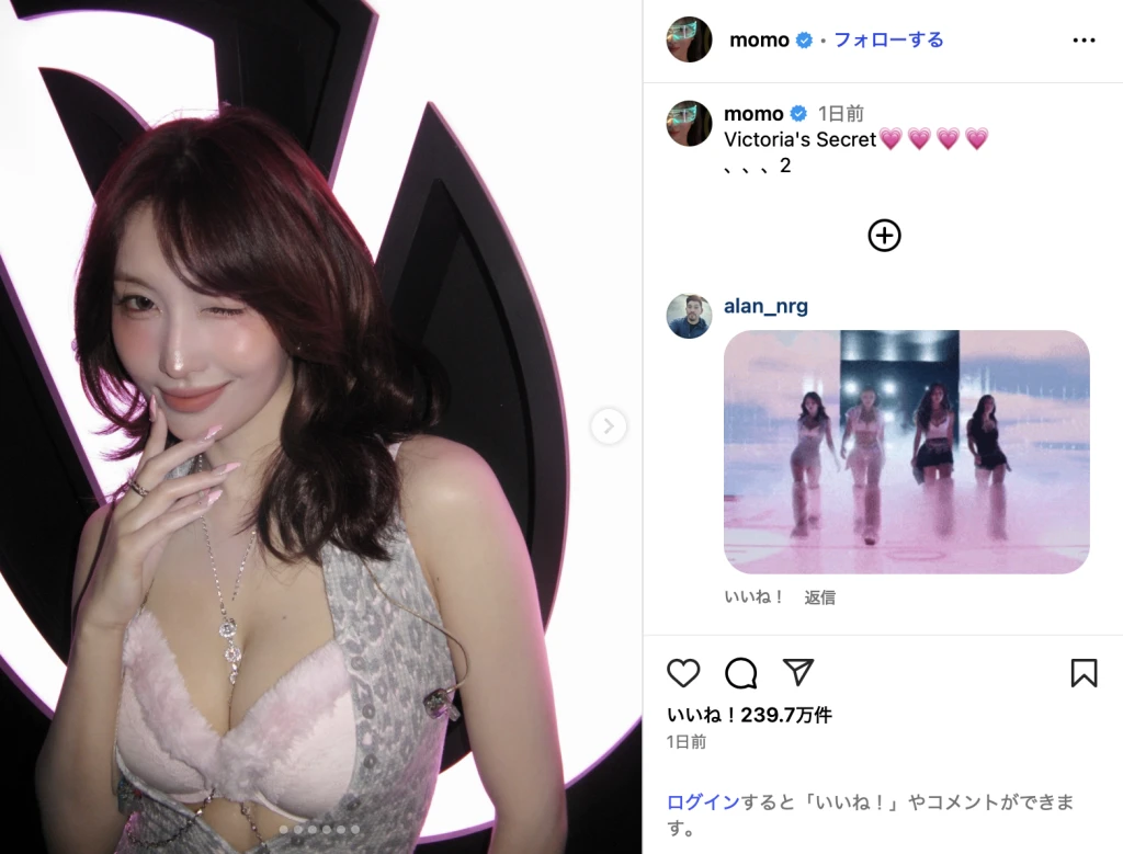 ガールズグループTWICE・モモが16日までに、Instagramを更新。