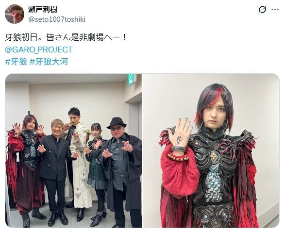 俳優の瀬戸利樹が、劇場版「牙狼<GARO> TAIGA」の公開初日を迎え、舞台挨拶でのオフショットを公開。