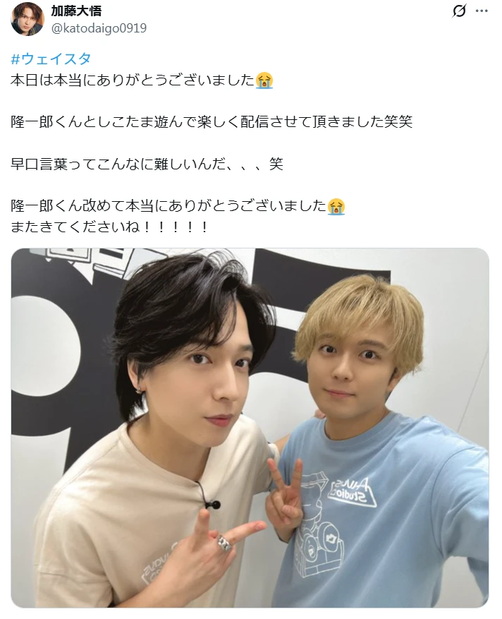 俳優の加藤大悟が、自身の公式チャンネル「A-ways Studio」での配信を終え、感謝の思いを綴った。