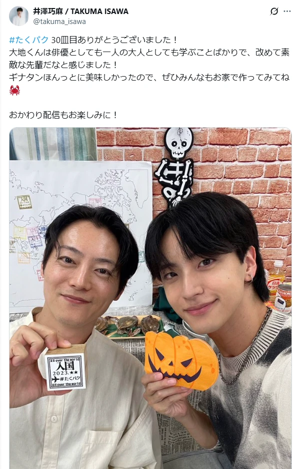 俳優・アーティストの井澤巧麻がニコニコチャンネルプラスで配信中の「井澤巧麻のパクッと世界を食べ尽くす!」の第30回目の配信を終え、感謝の思いを綴った。