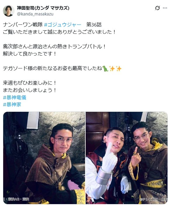 俳優の神田聖司が、「ナンバーワン戦隊ゴジュウジャー」第36話の放送を振り返り、感想を綴った。