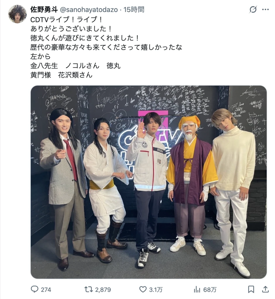 M!LK、TBS歴代ドラマキャラに仮装 CDTV出演で佐野勇斗「徳丸くんが遊びにきてくれました!」