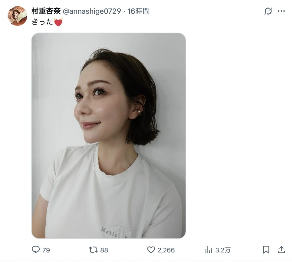 「きった💓」とつづり、肩上のボブにイメチェンした自身の写真を投稿。