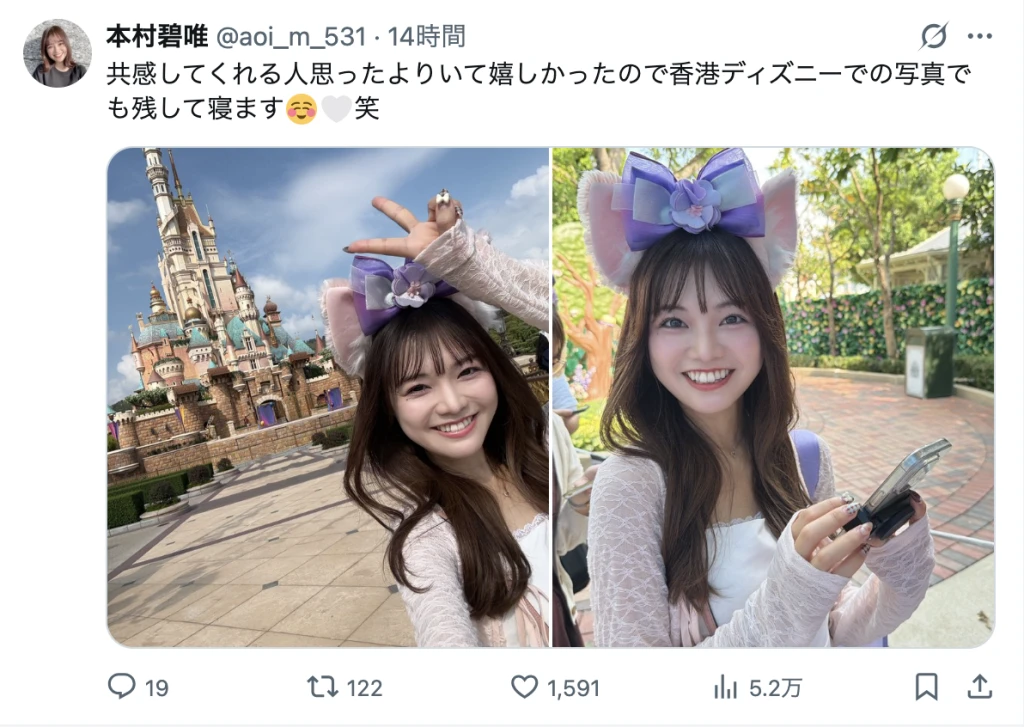 元HKT48・本村碧唯、香港ディズニーでの可愛いオフショットを公開!
