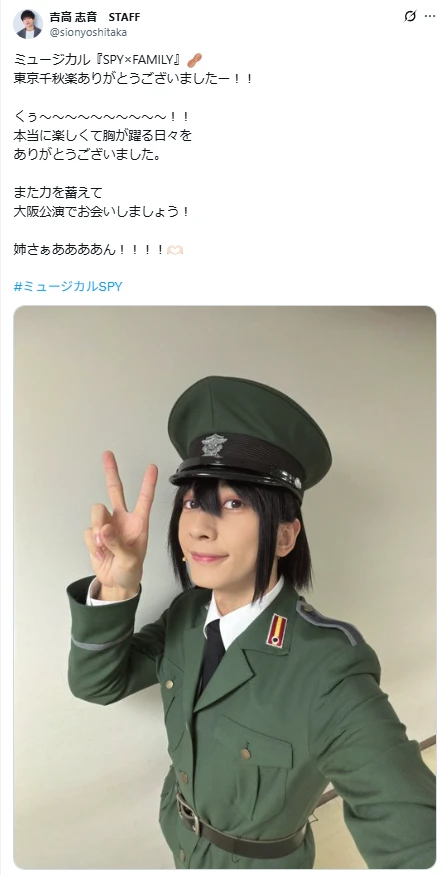 俳優の吉高志音が出演するミュージカル『SPY×FAMILY』が東京千秋楽を迎え、感謝の思いを綴った。
