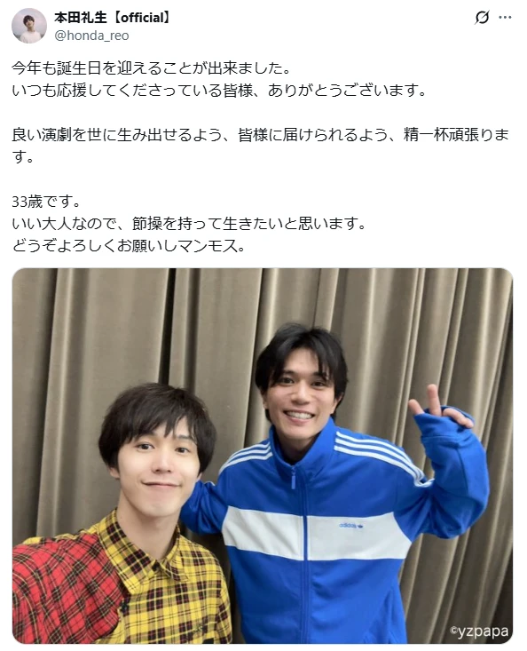 俳優の本田礼生が33歳の誕生日を迎え、抱負を語った。