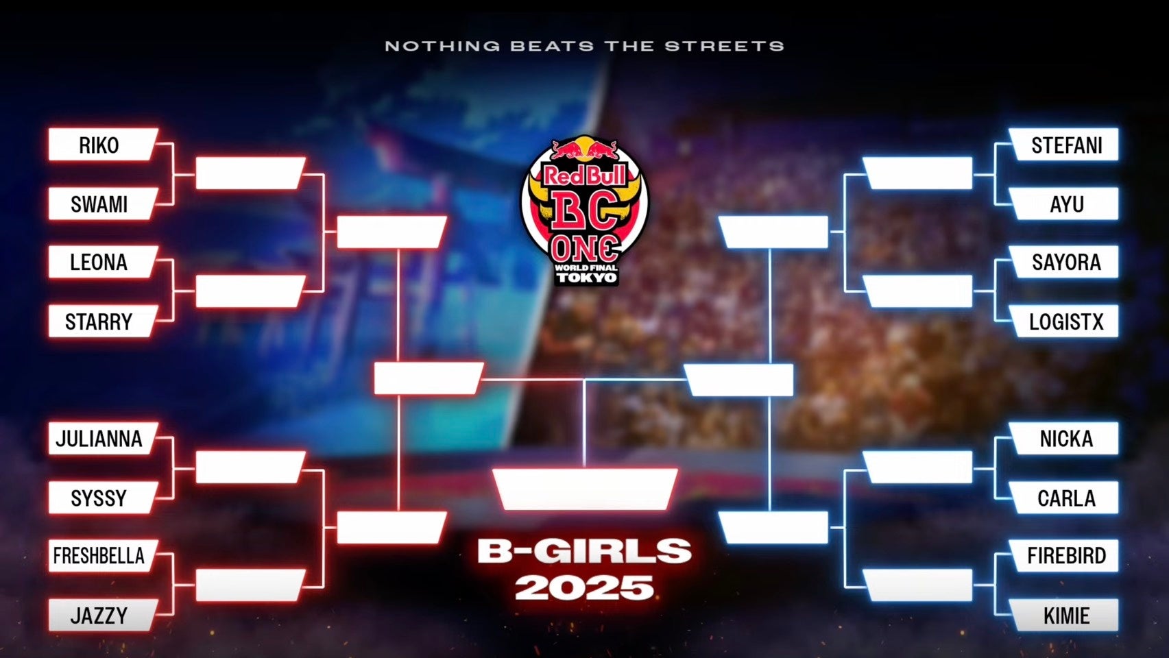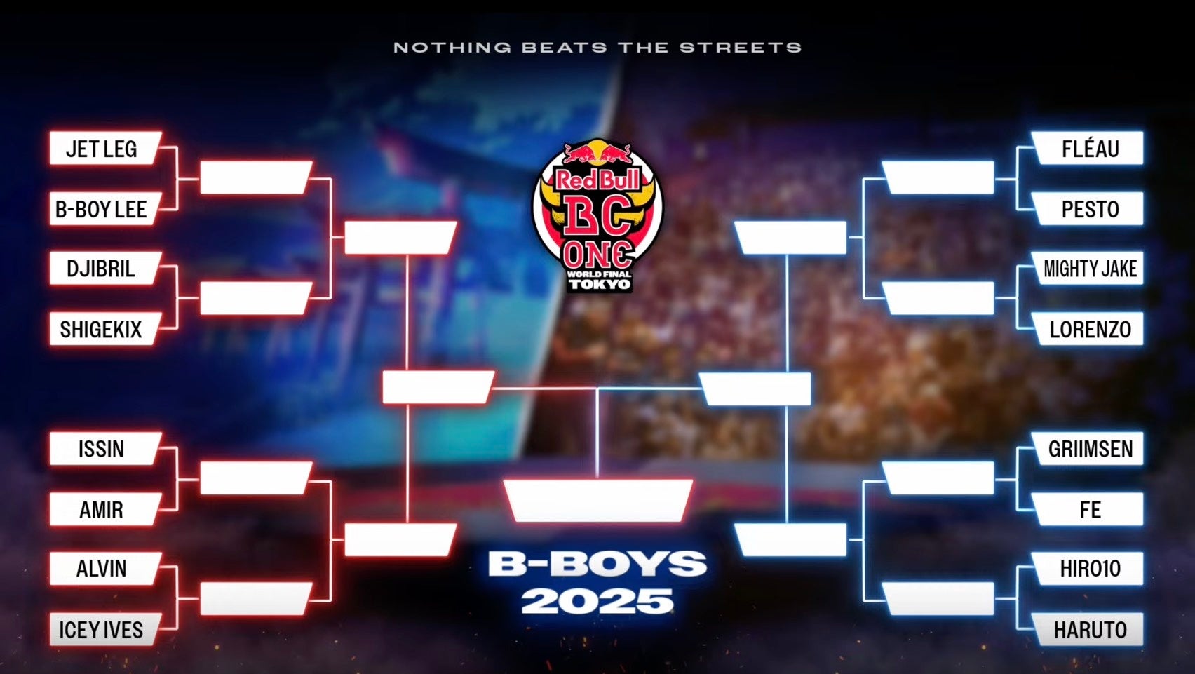 世界26カ国から予選を勝ち抜いたトップブレイカー、総勢51名 (B-Boy 25名 / B-Girl 26名)がバトルに参加。トップ16からは2ラウンドのノックアウト形式のトーナメントで進行し、最後まで勝ち残った男女各4名(B-Boy 4名 / B-Girl 4名)だけが「Red Bull BC One World Final Tokyo 2025」への出場権を手にします。