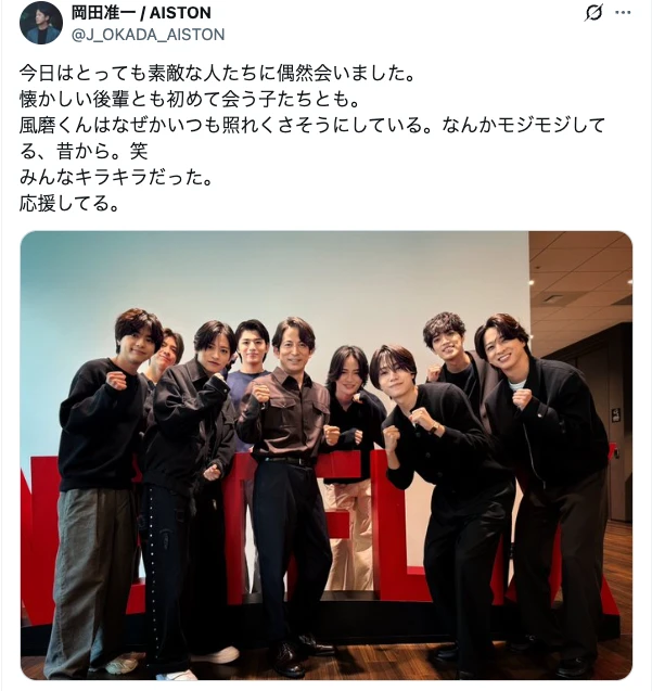 岡田准一、timeleszとの写真をXに投稿で話題「みんなキラキラだった。」