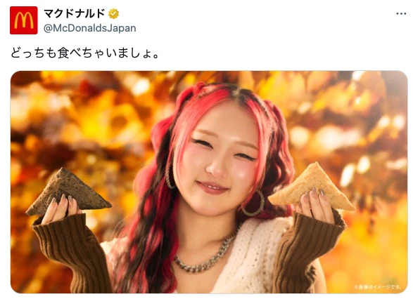 三角チョコパイ ティラミス味のPRに登場しているガールズグループ・HANAのCHIKAが2種類の三角チョコパイを持った画像が投稿された。