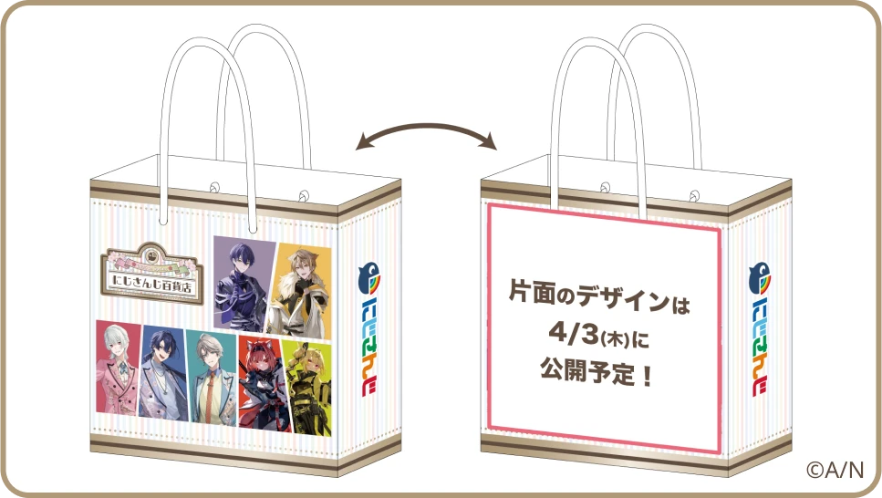 また、前半2025年4月5日(土)~2025年4月20日(日)の期間には、「にじさんじ百貨店 2025 in Spring」で販売されているグッズをご購入3,300円(税込)毎に、ノベルティ「百貨店商品券風カード(全7種)」から1枚ランダムでプレゼントいたします。
